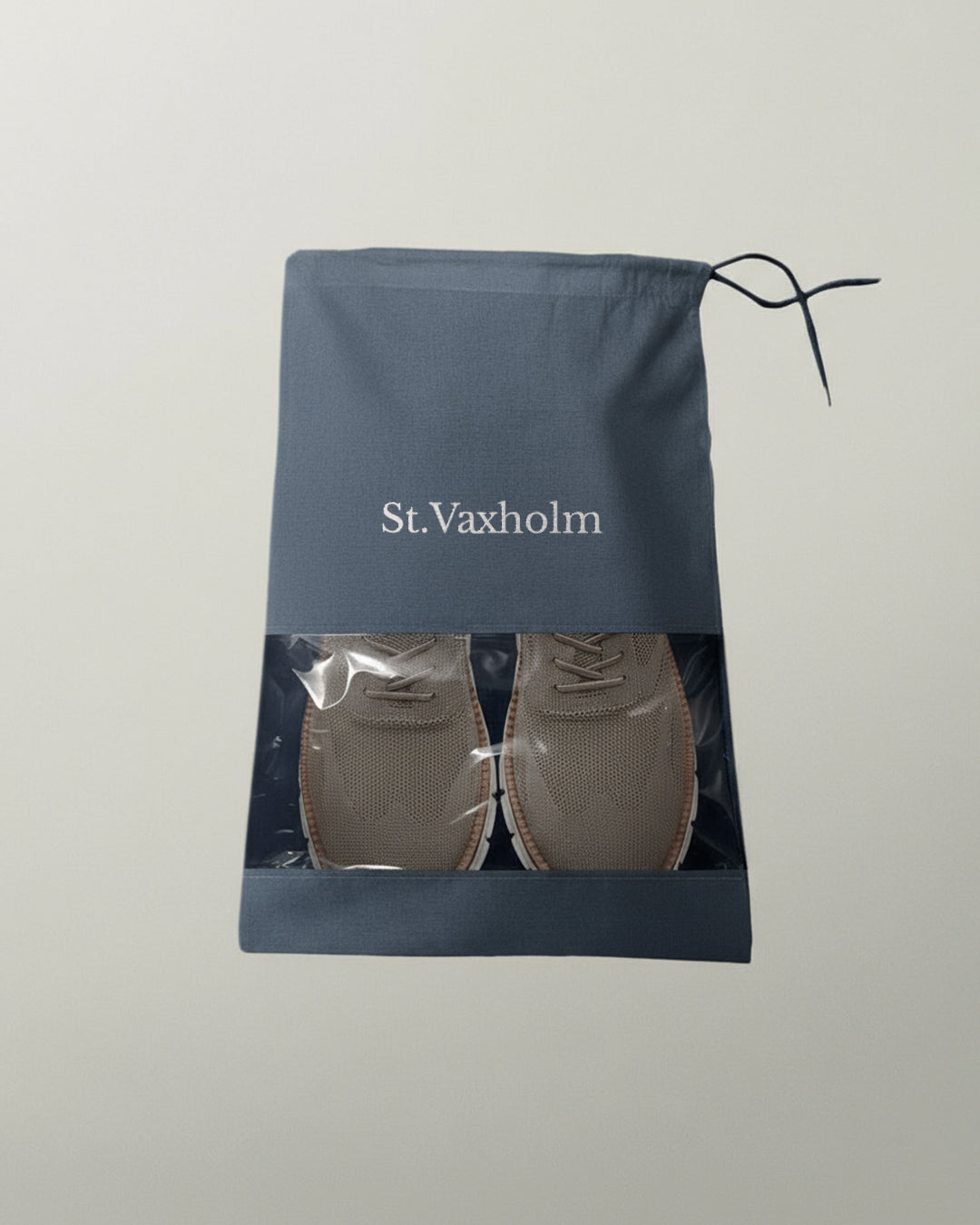 Jeder Schuh kommt in einem eleganten Stoffbeutel mit Sichtfenster – sauber, praktisch, stilvoll.