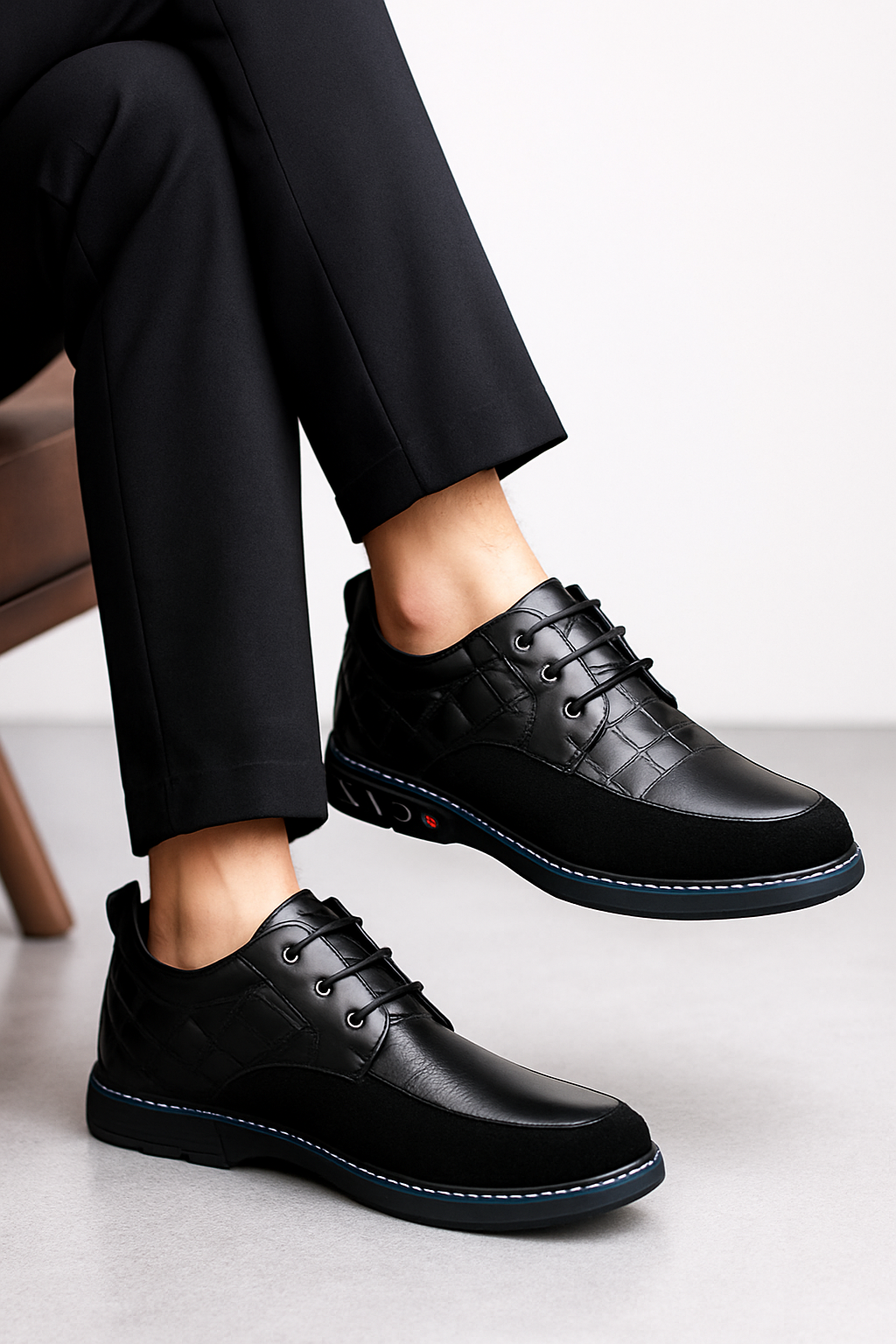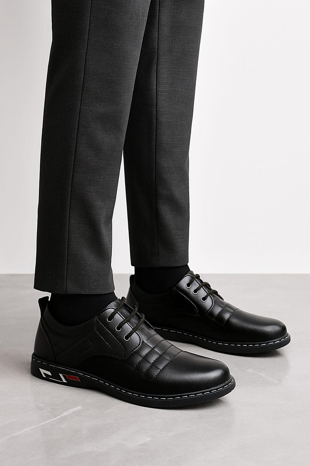 Elegant finsko i business casual-stil utan vit remsa. Andningsbart material och stödjande design ger komfort och stil för både vardag och arbete.